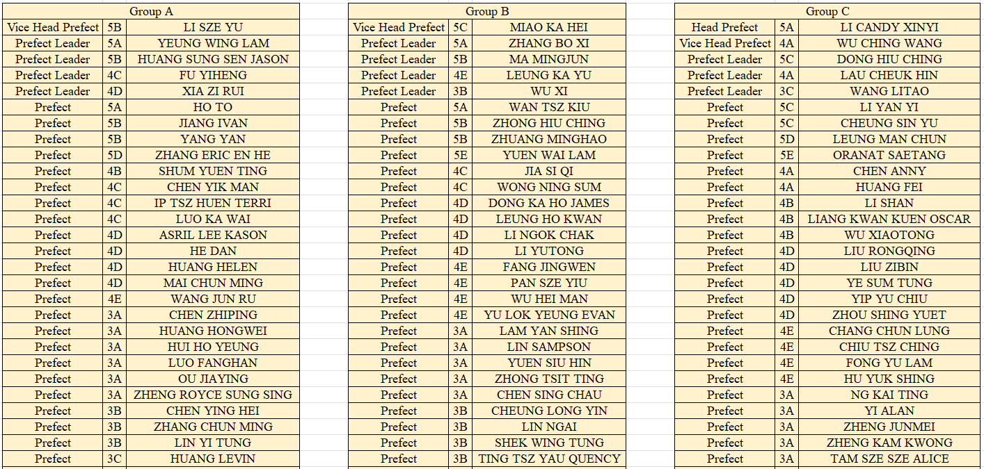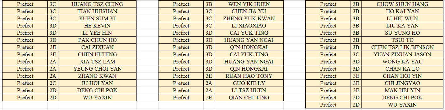 2024 - 2025 Prefects Name List